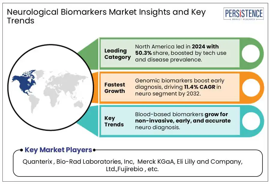 The global neurological biomarkers market is highly fragmented, with key players focusing on innovation and product development through strategic partnerships. Advancements in biomarker technologies and the growing demand for early disease detection is fueling market expansion and enhancing competitive positioning.
